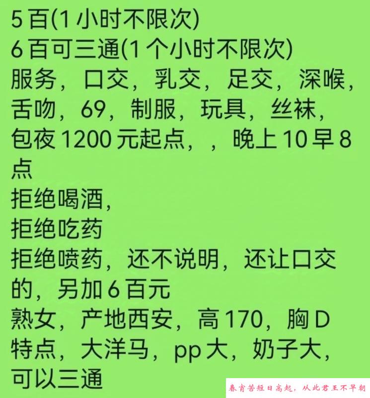 【特别注意】:凡是需要支付定金或路费的都是诈骗,再次提醒各位,一定不要先给钱!建议服务完后再给钱,或者谈好先给部分完事给剩下的。遇到还没服务就先给钱的,要千万小心被跑路和服务体验差,无数会员反馈谈好过夜却中途找借口跑路的情况!见面感觉不对劲就宁愿不玩,不然花了钱玩不开心得不偿失!